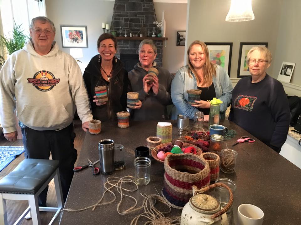 Below are a few photos from two recent soft-fiber basket making classes I taught locally – one class was held in Raymond, Washington and one in Boring, Oregon. Many wonderful baskets were made! Once you’ve learned the technique I teach you’ll enjoy using all sorts of materials to weave your baskets.
